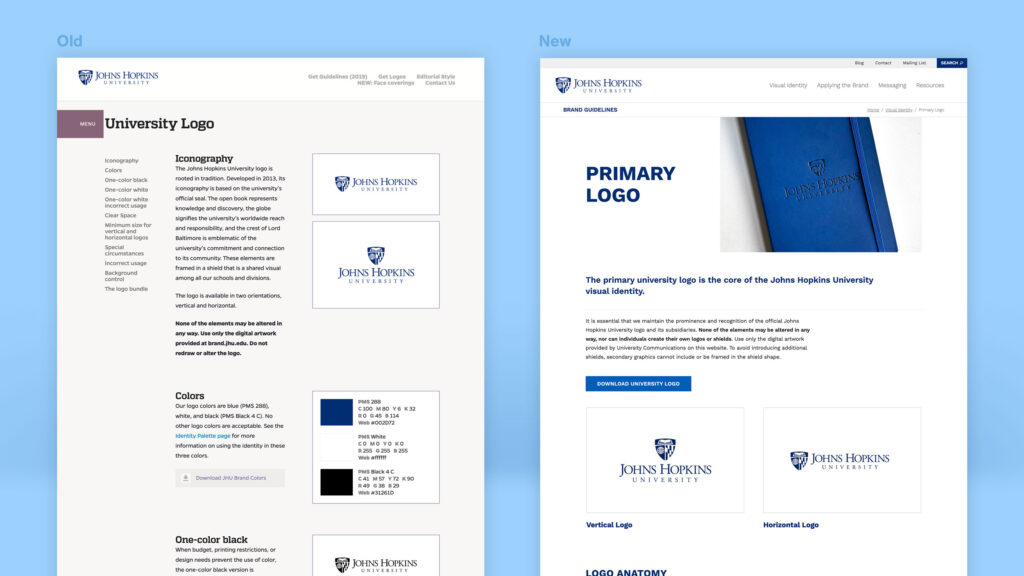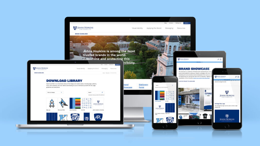 Hopkins’ brand has always been synonymous with excellence, and it’s continually evolving to meet the needs of a growing, global community. When the Office of University Communications set out to update their brand guideline site, the goal was clear: make it effortless for Hopkins’ many communicators and partners to access the most recent assets and brand guidance—removing barriers that previously slowed workflows and complicated brand alignment.