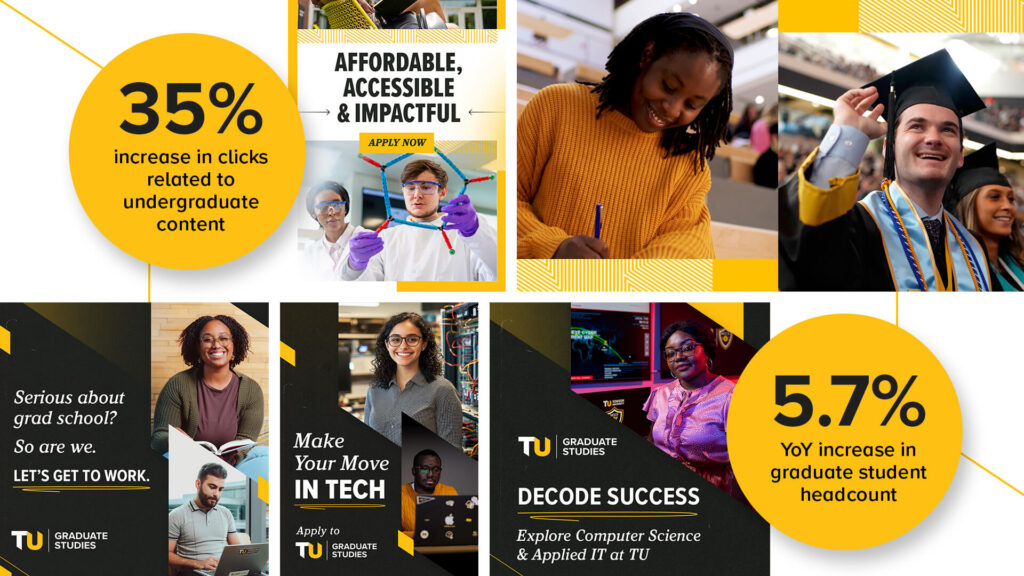 We’re also applying insights from past campaigns to shape future media mixes, ensuring investments are optimized across every channel. This cycle of analysis and refinement not only enhances performance but empowers TU to reinvest in new initiatives with confidence as they’re equipped with a proven strategy to thrive, even as the admissions landscape evolves.